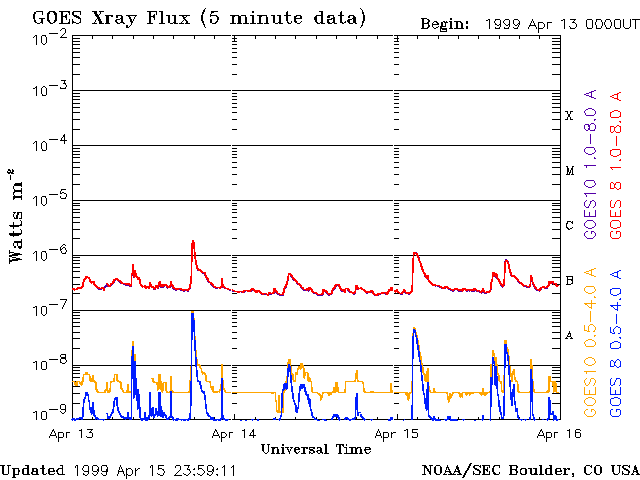 Provozní data ve výše uvedeném grafu byla upravena tak, aby se odstranil faktor škálování, který byl aplikován Střediskem předpovědi kosmického počasí (SWPC). Kvůli škálovacímu faktoru SWPC v provozních datech byly indexy vzplanutí pro provozní data hlášeny jako o 42 % menší než pro data o vědecké kvalitě. Faktor měřítka byl také odstraněn ze seznamu slunečních erupcí, aby odrážel skutečné fyzikální jednotky.