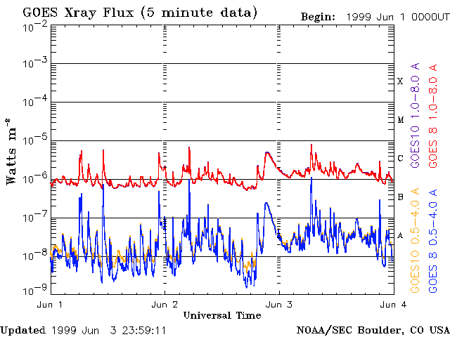 Provozní data ve výše uvedeném grafu byla upravena tak, aby se odstranil faktor škálování, který byl aplikován Střediskem předpovědi kosmického počasí (SWPC). Kvůli škálovacímu faktoru SWPC v provozních datech byly indexy vzplanutí pro provozní data hlášeny jako o 42 % menší než pro data o vědecké kvalitě. Faktor měřítka byl také odstraněn ze seznamu slunečních erupcí, aby odrážel skutečné fyzikální jednotky.