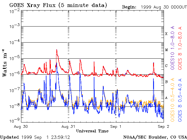 Provozní data ve výše uvedeném grafu byla upravena tak, aby se odstranil faktor škálování, který byl aplikován Střediskem předpovědi kosmického počasí (SWPC). Kvůli škálovacímu faktoru SWPC v provozních datech byly indexy vzplanutí pro provozní data hlášeny jako o 42 % menší než pro data o vědecké kvalitě. Faktor měřítka byl také odstraněn ze seznamu slunečních erupcí, aby odrážel skutečné fyzikální jednotky.
