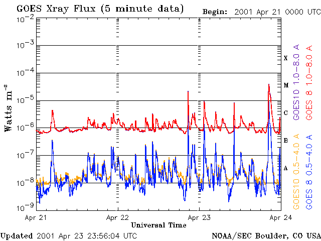 Provozní data ve výše uvedeném grafu byla upravena tak, aby se odstranil faktor škálování, který byl aplikován Střediskem předpovědi kosmického počasí (SWPC). Kvůli škálovacímu faktoru SWPC v provozních datech byly indexy vzplanutí pro provozní data hlášeny jako o 42 % menší než pro data o vědecké kvalitě. Faktor měřítka byl také odstraněn ze seznamu slunečních erupcí, aby odrážel skutečné fyzikální jednotky.