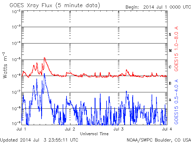Provozní data ve výše uvedeném grafu byla upravena tak, aby se odstranil faktor škálování, který byl aplikován Střediskem předpovědi kosmického počasí (SWPC). Kvůli škálovacímu faktoru SWPC v provozních datech byly indexy vzplanutí pro provozní data hlášeny jako o 42 % menší než pro data o vědecké kvalitě. Faktor měřítka byl také odstraněn ze seznamu slunečních erupcí, aby odrážel skutečné fyzikální jednotky.