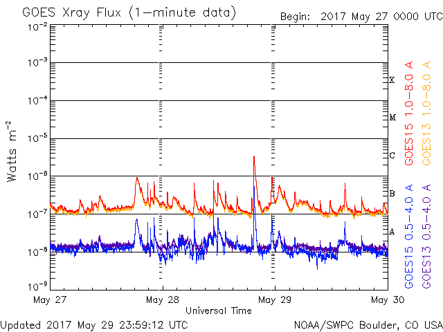 Provozní data ve výše uvedeném grafu byla upravena tak, aby se odstranil faktor škálování, který byl aplikován Střediskem předpovědi kosmického počasí (SWPC). Kvůli škálovacímu faktoru SWPC v provozních datech byly indexy vzplanutí pro provozní data hlášeny jako o 42 % menší než pro data o vědecké kvalitě. Faktor měřítka byl také odstraněn ze seznamu slunečních erupcí, aby odrážel skutečné fyzikální jednotky.