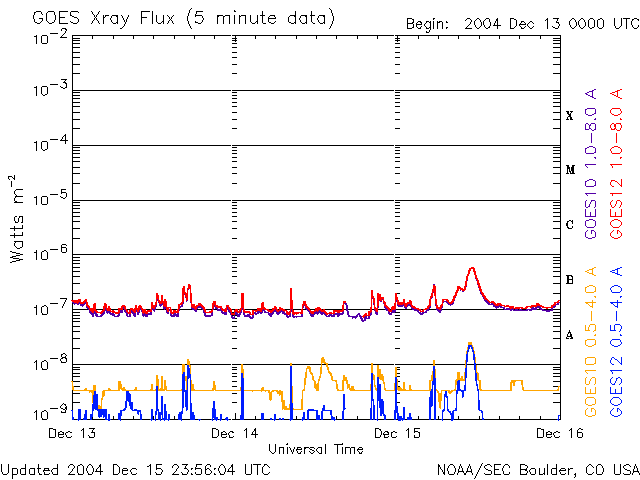 Die Daten in der obigen Grafik wurden geändert, um den Skalierungsfaktor des Space Weather Prediction Center (SWPC) zu entfernen. Durch den SWPC-Skalierungsfaktors für die Flare-Indizes werden die operativen Daten um 42 % kleiner angegeben als für die wissenschaftlichen Qualitätsdaten. Der Skalierungsfaktor wurde auch aus der Liste der Sonneneruptionen entfernt, um die tatsächlichen physikalischen Einheiten wiederzugeben.
