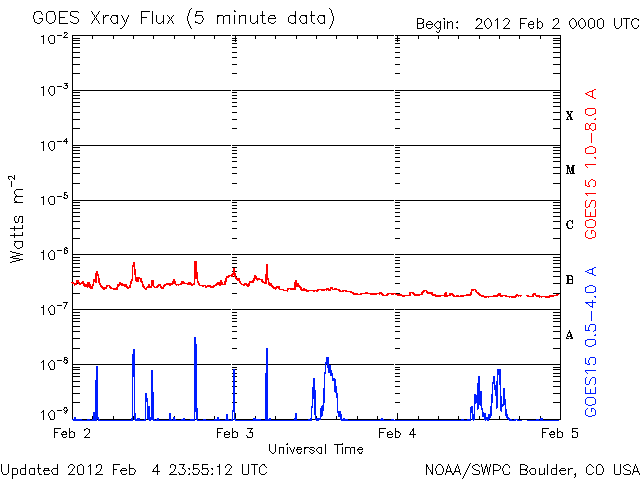 Die Daten in der obigen Grafik wurden geändert, um den Skalierungsfaktor des Space Weather Prediction Center (SWPC) zu entfernen. Durch den SWPC-Skalierungsfaktors für die Flare-Indizes werden die operativen Daten um 42 % kleiner angegeben als für die wissenschaftlichen Qualitätsdaten. Der Skalierungsfaktor wurde auch aus der Liste der Sonneneruptionen entfernt, um die tatsächlichen physikalischen Einheiten wiederzugeben.