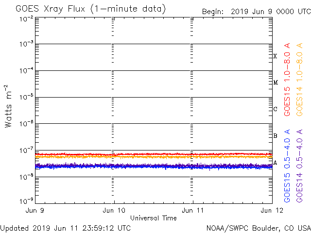 Die Daten in der obigen Grafik wurden geändert, um den Skalierungsfaktor des Space Weather Prediction Center (SWPC) zu entfernen. Durch den SWPC-Skalierungsfaktors für die Flare-Indizes werden die operativen Daten um 42 % kleiner angegeben als für die wissenschaftlichen Qualitätsdaten. Der Skalierungsfaktor wurde auch aus der Liste der Sonneneruptionen entfernt, um die tatsächlichen physikalischen Einheiten wiederzugeben.