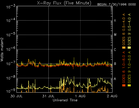 The operational data in the graph above has been modified to remove the scaling factor that has been applied by the Space Weather Prediction Center (SWPC). Because of the SWPC scaling factor in the operational data, flare indices for the operational data were reported as 42% smaller than for the science quality data. The scaling factor has also been removed from the solar flare list to reflect the true physical units.