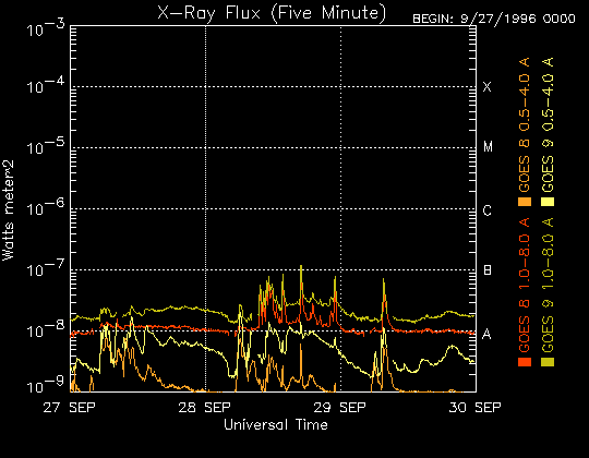 The operational data in the graph above has been modified to remove the scaling factor that has been applied by the Space Weather Prediction Center (SWPC). Because of the SWPC scaling factor in the operational data, flare indices for the operational data were reported as 42% smaller than for the science quality data. The scaling factor has also been removed from the solar flare list to reflect the true physical units.