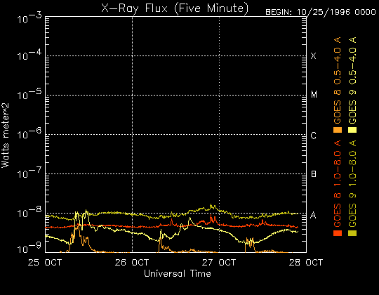 The operational data in the graph above has been modified to remove the scaling factor that has been applied by the Space Weather Prediction Center (SWPC). Because of the SWPC scaling factor in the operational data, flare indices for the operational data were reported as 42% smaller than for the science quality data. The scaling factor has also been removed from the solar flare list to reflect the true physical units.