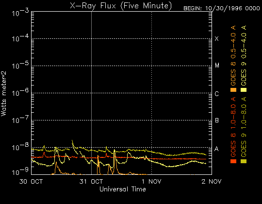 The operational data in the graph above has been modified to remove the scaling factor that has been applied by the Space Weather Prediction Center (SWPC). Because of the SWPC scaling factor in the operational data, flare indices for the operational data were reported as 42% smaller than for the science quality data. The scaling factor has also been removed from the solar flare list to reflect the true physical units.