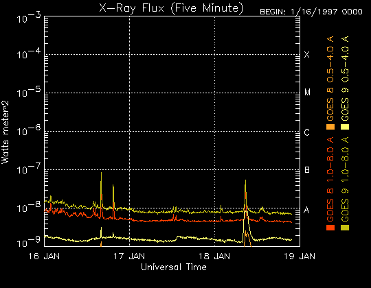 The operational data in the graph above has been modified to remove the scaling factor that has been applied by the Space Weather Prediction Center (SWPC). Because of the SWPC scaling factor in the operational data, flare indices for the operational data were reported as 42% smaller than for the science quality data. The scaling factor has also been removed from the solar flare list to reflect the true physical units.