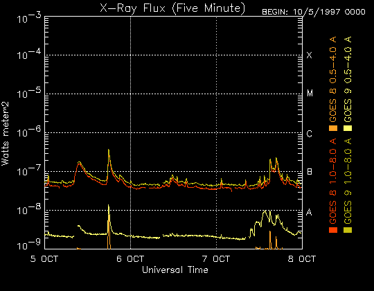 The operational data in the graph above has been modified to remove the scaling factor that has been applied by the Space Weather Prediction Center (SWPC). Because of the SWPC scaling factor in the operational data, flare indices for the operational data were reported as 42% smaller than for the science quality data. The scaling factor has also been removed from the solar flare list to reflect the true physical units.