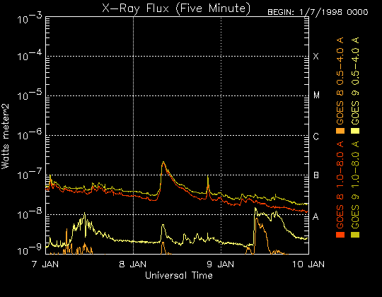 The operational data in the graph above has been modified to remove the scaling factor that has been applied by the Space Weather Prediction Center (SWPC). Because of the SWPC scaling factor in the operational data, flare indices for the operational data were reported as 42% smaller than for the science quality data. The scaling factor has also been removed from the solar flare list to reflect the true physical units.