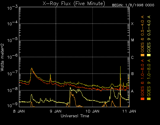 The operational data in the graph above has been modified to remove the scaling factor that has been applied by the Space Weather Prediction Center (SWPC). Because of the SWPC scaling factor in the operational data, flare indices for the operational data were reported as 42% smaller than for the science quality data. The scaling factor has also been removed from the solar flare list to reflect the true physical units.