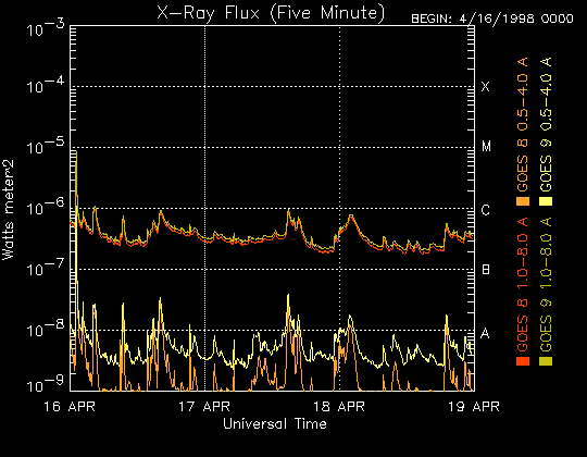The operational data in the graph above has been modified to remove the scaling factor that has been applied by the Space Weather Prediction Center (SWPC). Because of the SWPC scaling factor in the operational data, flare indices for the operational data were reported as 42% smaller than for the science quality data. The scaling factor has also been removed from the solar flare list to reflect the true physical units.