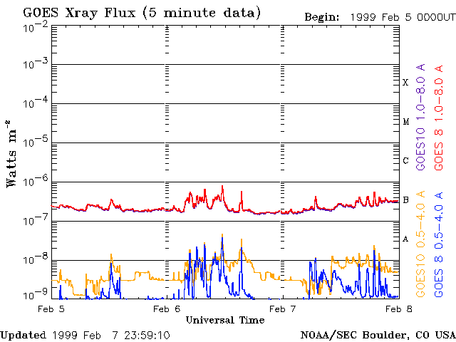 The operational data in the graph above has been modified to remove the scaling factor that has been applied by the Space Weather Prediction Center (SWPC). Because of the SWPC scaling factor in the operational data, flare indices for the operational data were reported as 42% smaller than for the science quality data. The scaling factor has also been removed from the solar flare list to reflect the true physical units.