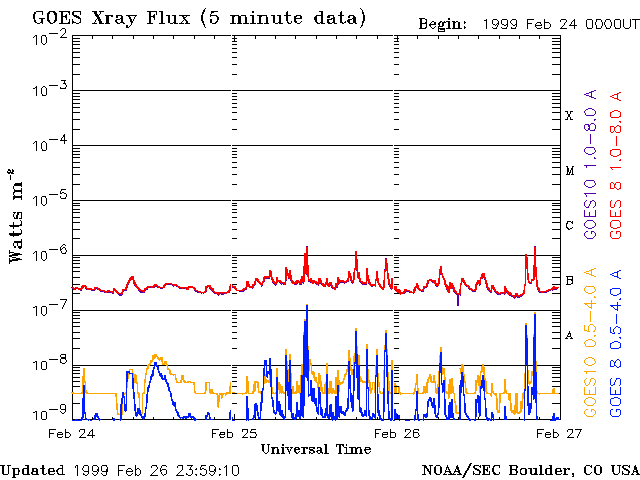 The operational data in the graph above has been modified to remove the scaling factor that has been applied by the Space Weather Prediction Center (SWPC). Because of the SWPC scaling factor in the operational data, flare indices for the operational data were reported as 42% smaller than for the science quality data. The scaling factor has also been removed from the solar flare list to reflect the true physical units.