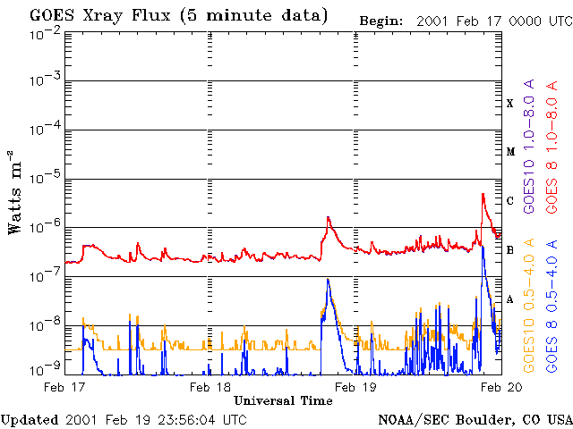 The operational data in the graph above has been modified to remove the scaling factor that has been applied by the Space Weather Prediction Center (SWPC). Because of the SWPC scaling factor in the operational data, flare indices for the operational data were reported as 42% smaller than for the science quality data. The scaling factor has also been removed from the solar flare list to reflect the true physical units.