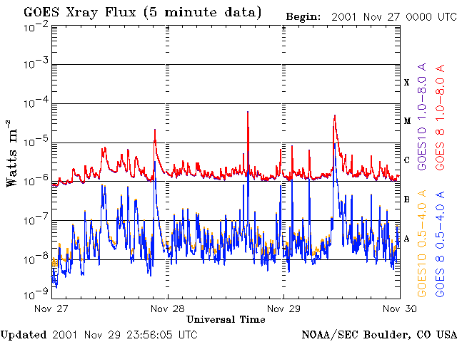 The operational data in the graph above has been modified to remove the scaling factor that has been applied by the Space Weather Prediction Center (SWPC). Because of the SWPC scaling factor in the operational data, flare indices for the operational data were reported as 42% smaller than for the science quality data. The scaling factor has also been removed from the solar flare list to reflect the true physical units.