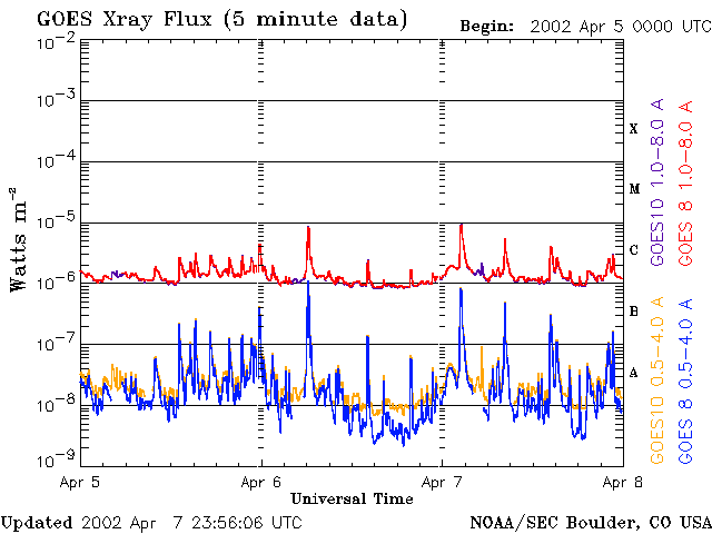 The operational data in the graph above has been modified to remove the scaling factor that has been applied by the Space Weather Prediction Center (SWPC). Because of the SWPC scaling factor in the operational data, flare indices for the operational data were reported as 42% smaller than for the science quality data. The scaling factor has also been removed from the solar flare list to reflect the true physical units.