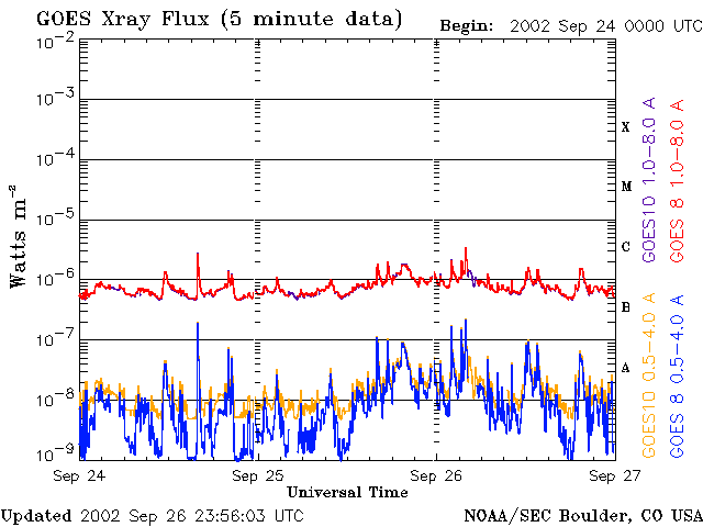 The operational data in the graph above has been modified to remove the scaling factor that has been applied by the Space Weather Prediction Center (SWPC). Because of the SWPC scaling factor in the operational data, flare indices for the operational data were reported as 42% smaller than for the science quality data. The scaling factor has also been removed from the solar flare list to reflect the true physical units.