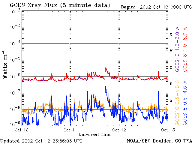 The operational data in the graph above has been modified to remove the scaling factor that has been applied by the Space Weather Prediction Center (SWPC). Because of the SWPC scaling factor in the operational data, flare indices for the operational data were reported as 42% smaller than for the science quality data. The scaling factor has also been removed from the solar flare list to reflect the true physical units.