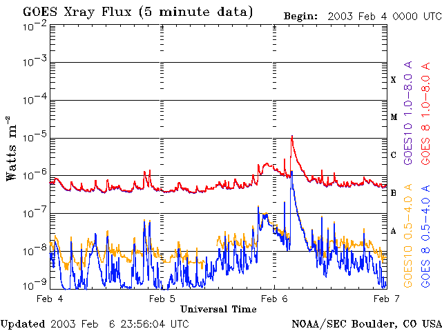 The operational data in the graph above has been modified to remove the scaling factor that has been applied by the Space Weather Prediction Center (SWPC). Because of the SWPC scaling factor in the operational data, flare indices for the operational data were reported as 42% smaller than for the science quality data. The scaling factor has also been removed from the solar flare list to reflect the true physical units.