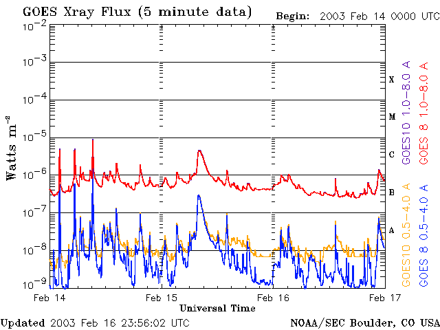 The operational data in the graph above has been modified to remove the scaling factor that has been applied by the Space Weather Prediction Center (SWPC). Because of the SWPC scaling factor in the operational data, flare indices for the operational data were reported as 42% smaller than for the science quality data. The scaling factor has also been removed from the solar flare list to reflect the true physical units.