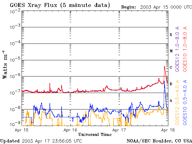 The operational data in the graph above has been modified to remove the scaling factor that has been applied by the Space Weather Prediction Center (SWPC). Because of the SWPC scaling factor in the operational data, flare indices for the operational data were reported as 42% smaller than for the science quality data. The scaling factor has also been removed from the solar flare list to reflect the true physical units.