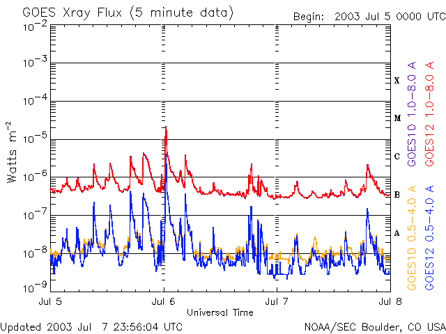 The operational data in the graph above has been modified to remove the scaling factor that has been applied by the Space Weather Prediction Center (SWPC). Because of the SWPC scaling factor in the operational data, flare indices for the operational data were reported as 42% smaller than for the science quality data. The scaling factor has also been removed from the solar flare list to reflect the true physical units.