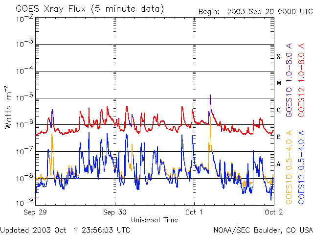 The operational data in the graph above has been modified to remove the scaling factor that has been applied by the Space Weather Prediction Center (SWPC). Because of the SWPC scaling factor in the operational data, flare indices for the operational data were reported as 42% smaller than for the science quality data. The scaling factor has also been removed from the solar flare list to reflect the true physical units.