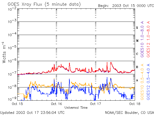 The operational data in the graph above has been modified to remove the scaling factor that has been applied by the Space Weather Prediction Center (SWPC). Because of the SWPC scaling factor in the operational data, flare indices for the operational data were reported as 42% smaller than for the science quality data. The scaling factor has also been removed from the solar flare list to reflect the true physical units.