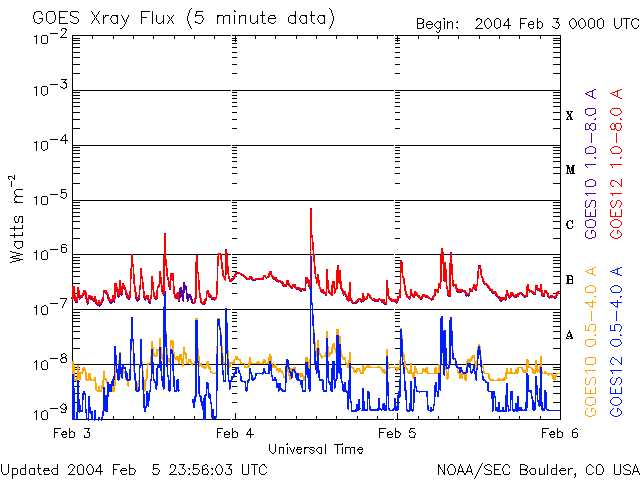 The operational data in the graph above has been modified to remove the scaling factor that has been applied by the Space Weather Prediction Center (SWPC). Because of the SWPC scaling factor in the operational data, flare indices for the operational data were reported as 42% smaller than for the science quality data. The scaling factor has also been removed from the solar flare list to reflect the true physical units.