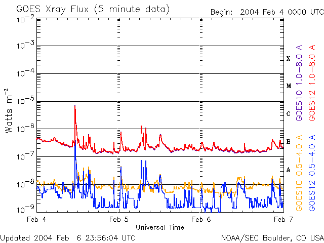The operational data in the graph above has been modified to remove the scaling factor that has been applied by the Space Weather Prediction Center (SWPC). Because of the SWPC scaling factor in the operational data, flare indices for the operational data were reported as 42% smaller than for the science quality data. The scaling factor has also been removed from the solar flare list to reflect the true physical units.