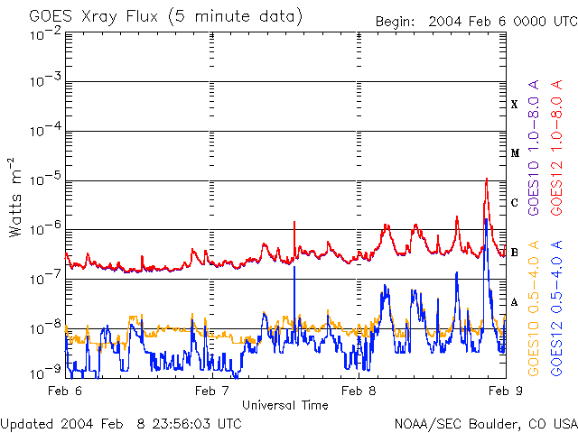 The operational data in the graph above has been modified to remove the scaling factor that has been applied by the Space Weather Prediction Center (SWPC). Because of the SWPC scaling factor in the operational data, flare indices for the operational data were reported as 42% smaller than for the science quality data. The scaling factor has also been removed from the solar flare list to reflect the true physical units.