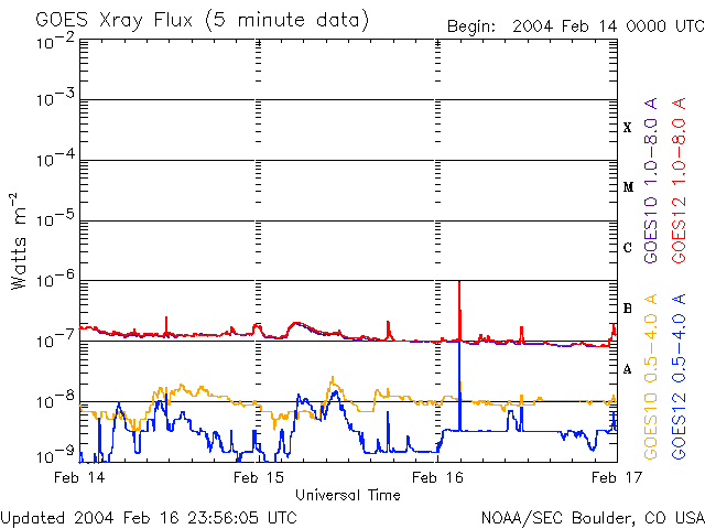 The operational data in the graph above has been modified to remove the scaling factor that has been applied by the Space Weather Prediction Center (SWPC). Because of the SWPC scaling factor in the operational data, flare indices for the operational data were reported as 42% smaller than for the science quality data. The scaling factor has also been removed from the solar flare list to reflect the true physical units.