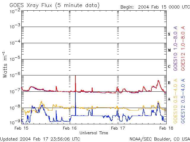 The operational data in the graph above has been modified to remove the scaling factor that has been applied by the Space Weather Prediction Center (SWPC). Because of the SWPC scaling factor in the operational data, flare indices for the operational data were reported as 42% smaller than for the science quality data. The scaling factor has also been removed from the solar flare list to reflect the true physical units.