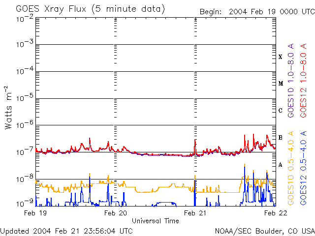 The operational data in the graph above has been modified to remove the scaling factor that has been applied by the Space Weather Prediction Center (SWPC). Because of the SWPC scaling factor in the operational data, flare indices for the operational data were reported as 42% smaller than for the science quality data. The scaling factor has also been removed from the solar flare list to reflect the true physical units.