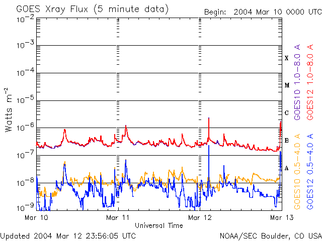 The operational data in the graph above has been modified to remove the scaling factor that has been applied by the Space Weather Prediction Center (SWPC). Because of the SWPC scaling factor in the operational data, flare indices for the operational data were reported as 42% smaller than for the science quality data. The scaling factor has also been removed from the solar flare list to reflect the true physical units.