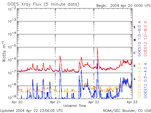 The operational data in the graph above has been modified to remove the scaling factor that has been applied by the Space Weather Prediction Center (SWPC). Because of the SWPC scaling factor in the operational data, flare indices for the operational data were reported as 42% smaller than for the science quality data. The scaling factor has also been removed from the solar flare list to reflect the true physical units.