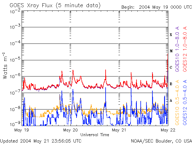 The operational data in the graph above has been modified to remove the scaling factor that has been applied by the Space Weather Prediction Center (SWPC). Because of the SWPC scaling factor in the operational data, flare indices for the operational data were reported as 42% smaller than for the science quality data. The scaling factor has also been removed from the solar flare list to reflect the true physical units.