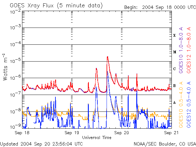 The operational data in the graph above has been modified to remove the scaling factor that has been applied by the Space Weather Prediction Center (SWPC). Because of the SWPC scaling factor in the operational data, flare indices for the operational data were reported as 42% smaller than for the science quality data. The scaling factor has also been removed from the solar flare list to reflect the true physical units.