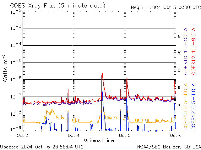 The operational data in the graph above has been modified to remove the scaling factor that has been applied by the Space Weather Prediction Center (SWPC). Because of the SWPC scaling factor in the operational data, flare indices for the operational data were reported as 42% smaller than for the science quality data. The scaling factor has also been removed from the solar flare list to reflect the true physical units.