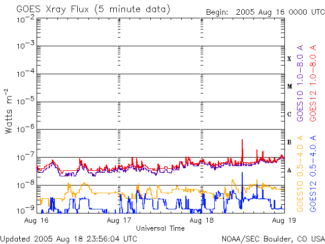 The operational data in the graph above has been modified to remove the scaling factor that has been applied by the Space Weather Prediction Center (SWPC). Because of the SWPC scaling factor in the operational data, flare indices for the operational data were reported as 42% smaller than for the science quality data. The scaling factor has also been removed from the solar flare list to reflect the true physical units.