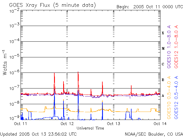 The operational data in the graph above has been modified to remove the scaling factor that has been applied by the Space Weather Prediction Center (SWPC). Because of the SWPC scaling factor in the operational data, flare indices for the operational data were reported as 42% smaller than for the science quality data. The scaling factor has also been removed from the solar flare list to reflect the true physical units.