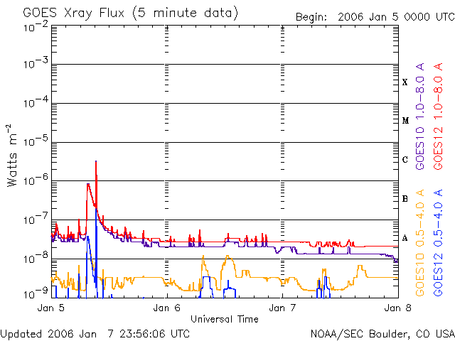 The operational data in the graph above has been modified to remove the scaling factor that has been applied by the Space Weather Prediction Center (SWPC). Because of the SWPC scaling factor in the operational data, flare indices for the operational data were reported as 42% smaller than for the science quality data. The scaling factor has also been removed from the solar flare list to reflect the true physical units.
