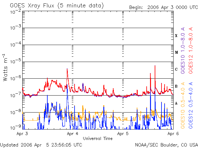 The operational data in the graph above has been modified to remove the scaling factor that has been applied by the Space Weather Prediction Center (SWPC). Because of the SWPC scaling factor in the operational data, flare indices for the operational data were reported as 42% smaller than for the science quality data. The scaling factor has also been removed from the solar flare list to reflect the true physical units.