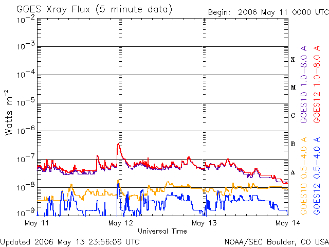The operational data in the graph above has been modified to remove the scaling factor that has been applied by the Space Weather Prediction Center (SWPC). Because of the SWPC scaling factor in the operational data, flare indices for the operational data were reported as 42% smaller than for the science quality data. The scaling factor has also been removed from the solar flare list to reflect the true physical units.