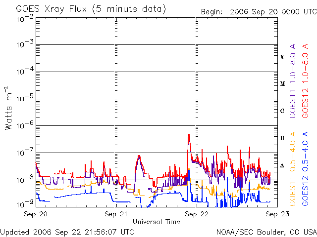 The operational data in the graph above has been modified to remove the scaling factor that has been applied by the Space Weather Prediction Center (SWPC). Because of the SWPC scaling factor in the operational data, flare indices for the operational data were reported as 42% smaller than for the science quality data. The scaling factor has also been removed from the solar flare list to reflect the true physical units.