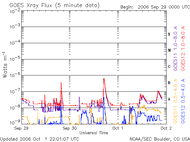 The operational data in the graph above has been modified to remove the scaling factor that has been applied by the Space Weather Prediction Center (SWPC). Because of the SWPC scaling factor in the operational data, flare indices for the operational data were reported as 42% smaller than for the science quality data. The scaling factor has also been removed from the solar flare list to reflect the true physical units.