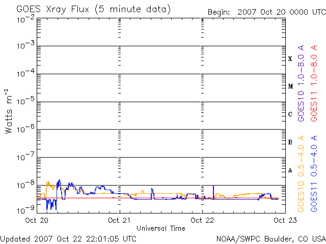 The operational data in the graph above has been modified to remove the scaling factor that has been applied by the Space Weather Prediction Center (SWPC). Because of the SWPC scaling factor in the operational data, flare indices for the operational data were reported as 42% smaller than for the science quality data. The scaling factor has also been removed from the solar flare list to reflect the true physical units.
